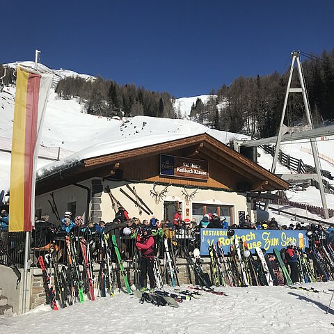 Die Rossbachklause, direkt an der Mittelstation, ist der ideale Ort für eine stärkende Pause. Auf der sonnigen Terrasse lässt es sich herrlich entspannen, während drinnen eine große Auswahl an köstlichen Gerichten auf dich wartet. Hier findest du alles von herzhaften Klassikern bis zu feinen regionalen Spezialitäten – ein Muss für jeden, der Genuss und Skispaß perfekt verbinden will!