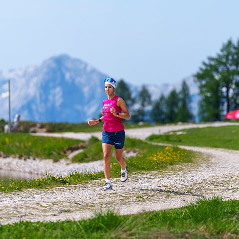 Trailrunning mit Ausblick auf das Tote Gebirge vorbei an duftenden Almwiesen, durch schattige Bergwälder bis in hochalpine Regionen rauf Richtung Schrocken.