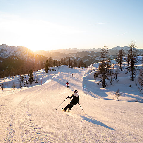 Erlebe die Magie des Morgens auf der Wurzeralm! Beim 1st Line Skiabenteuer ziehst du noch vor allen anderen deine ersten Schwünge auf frisch präparierten Pisten – begleitet von einem atemberaubenden Sonnenaufgang.