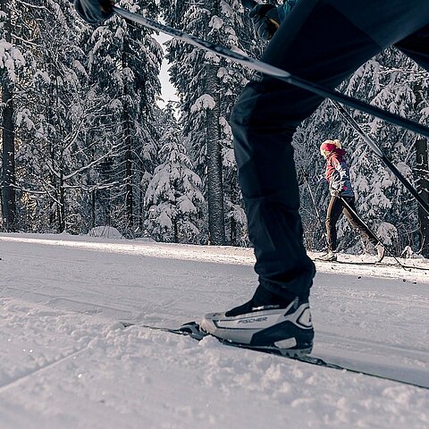 Langlaufen in eurem Urlaub am Hochficht? Ja, das geht - auf der neun Kilometer langen, mittelschweren Panoramaloipe. Start- und Endpunkt ist der Ortsplatz von Klaffer. Von dort aus seid ihr 1,5 Stunden durch malerische Landschaften unterwegs. Herrliche Ausblicke sind inklusive! Insgesamt bietet das Nordische Zentrum Böhmerwald rund 150 Kilometer Loipen durch die gesamte Ferienregion. Zu 78 Kilometern Höhenloipen gesellen sich bei guter Schneelage auch rund 70 Kilometer Loipen im Tal. Ob klassisch oder Skating, für Anfänger oder sportliche Langläufer: Im Dreiländereck Österreich-Deutschland-Tschechien ist für jeden die passende Loipe dabei!