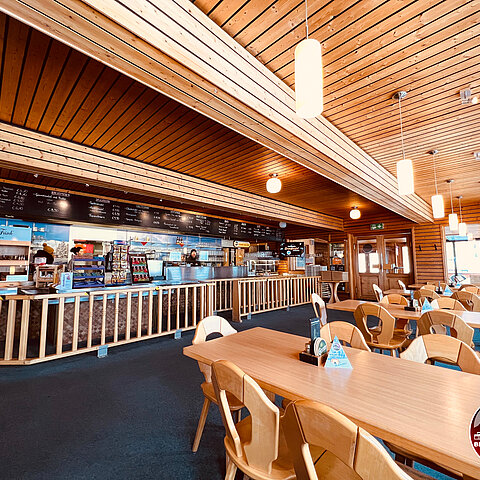 Direkt an der Talstation der Wurzeralm befindet sich das ARENA-TREFF Wurzeralm mit der Kombination aus Aprés Ski Bar, Café und Bistro.